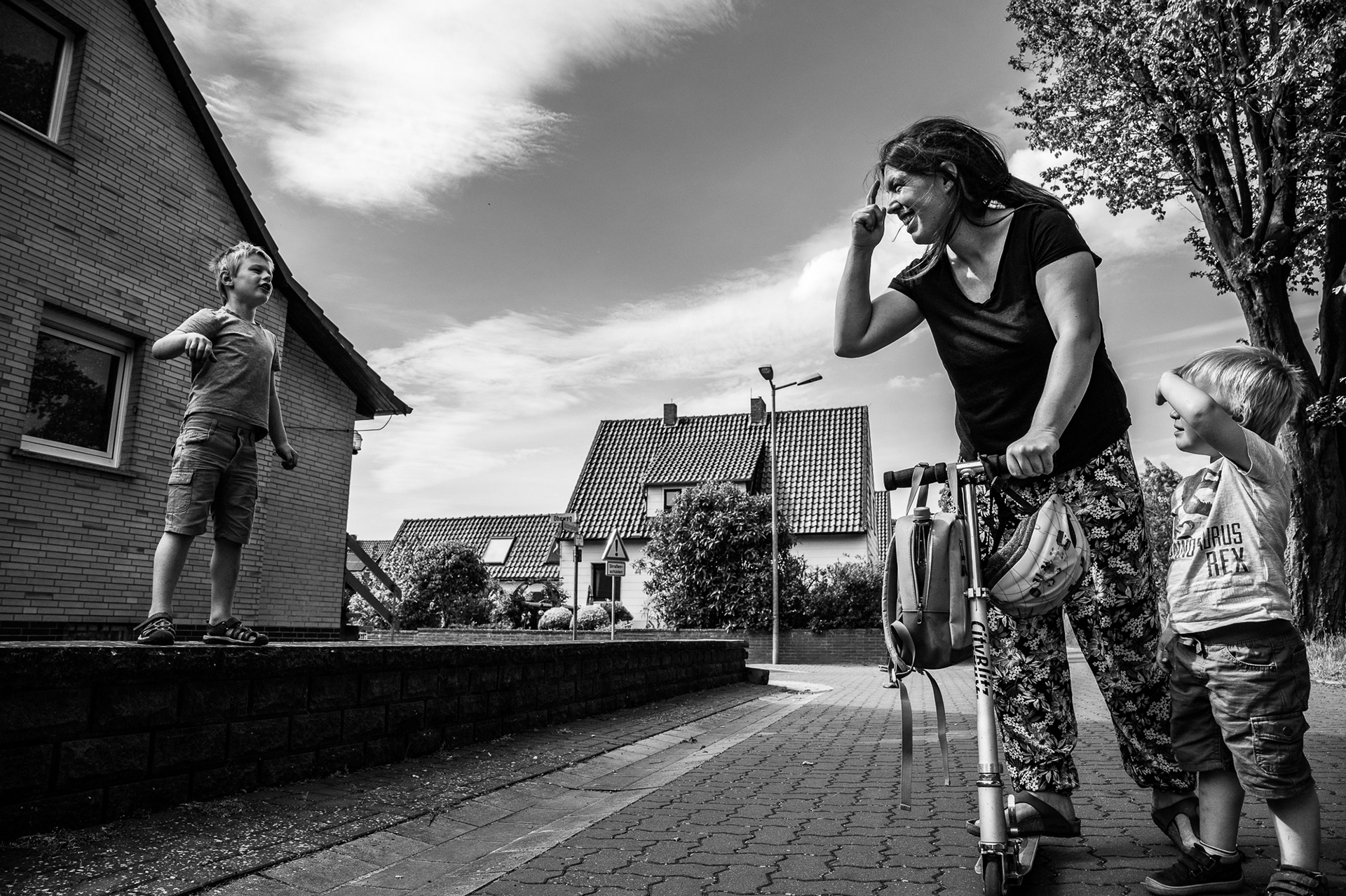 Für mich steht bei der Fotografie die künstlerische Abbildung von echten Alltagsmomenten im Vordergrund. Die Bilder sollen ein Stück Zeitgeschichte werden. Deshalb ist es mir wichtig, dass ihr die Bilder auch noch in 30, 40 gerne anschaut. Bei der Bearbeitung achte ich darauf, die Anpassungen so vorzunehmen, dass sie der von mir gesehenen Realität entsprechen. Mir ist bewusst, dass es zur Zeit trendy ist, die Bilder in sehr warmen Erdtönen zu bearbeiten. Dabei ist das Gras nicht mehr grün und die Blumen sind nicht mehr gelb. Die Haut hat einen Orangestich. Auch wenn dir diese Bildbearbeitung jetzt gerade gefällt, wirst du dich daran irgendwann sattgesehen haben und die Farben nicht mehr mögen. Euer echtes Leben in seinen echten Farben wird euch immer gefallen. Das verspreche ich euch. Einige der Bilder bearbeite ich sogar ausschließlich in schwarz-weiß, denn in manchen Situationen kann sich der Moment erst so richtig auf einem Foto zeigen, wenn Farben oder wilde Muster nicht davon ablenken. Meine schwarz-weiß Bearbeitung orientiert sich an der klassischen Fotografie. Ihr bekommt kontrastreiche Bilder, die nie aus der Mode kommen.